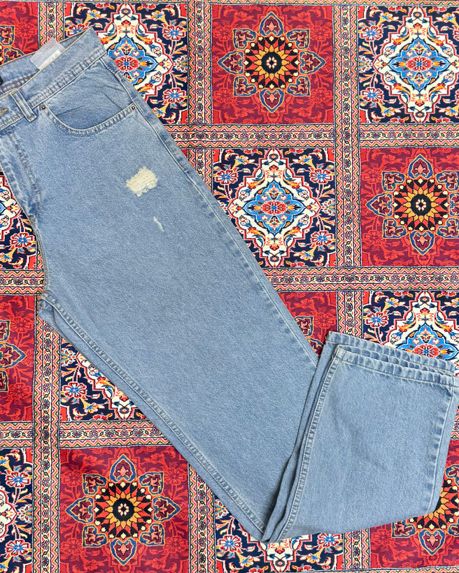 شلوار لی ساده ابی یخی نیم بگ