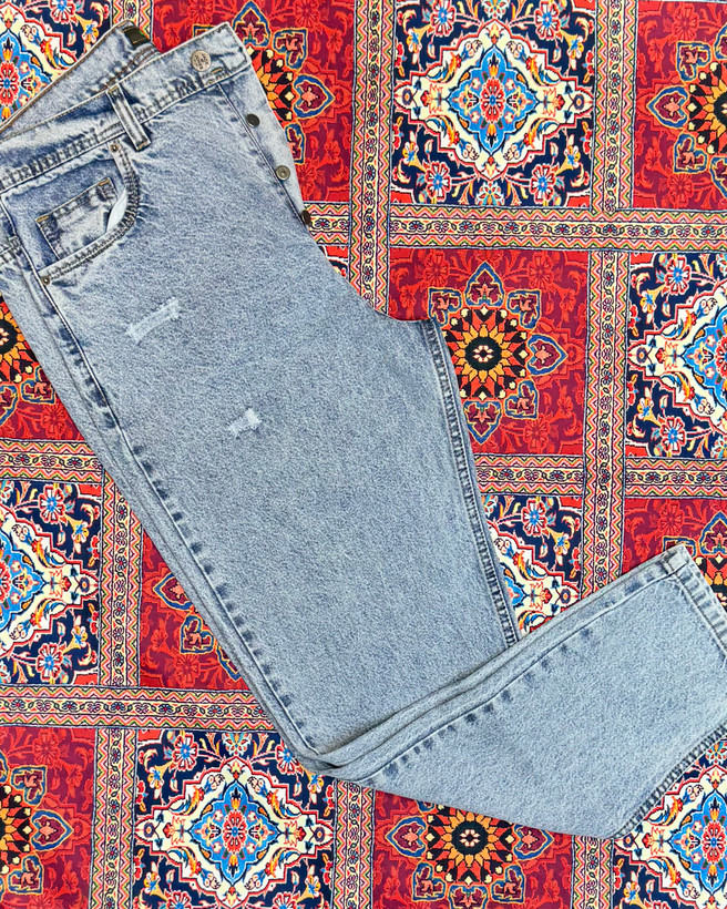 شلوار لی مام فیت ساده ابی یخی